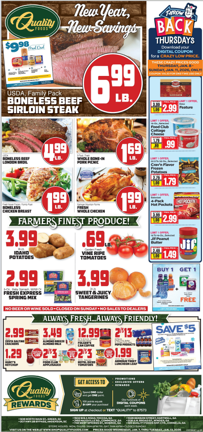 Want to get a head start on your shopping? The Quality Foods weekly ad is updated early so you can plan ahead. Check back regularly to catch the latest deals before they go live.